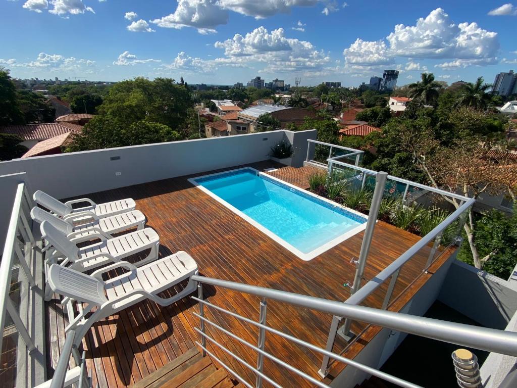 Hay varias instalaciones de piscina disponibles en Apart-Hotel de Lujo en Eje Corporativo de Asunción! 2 y 3 habitaciones, incluyendo piscina al aire libre (todo el año) y piscina en la azotea.